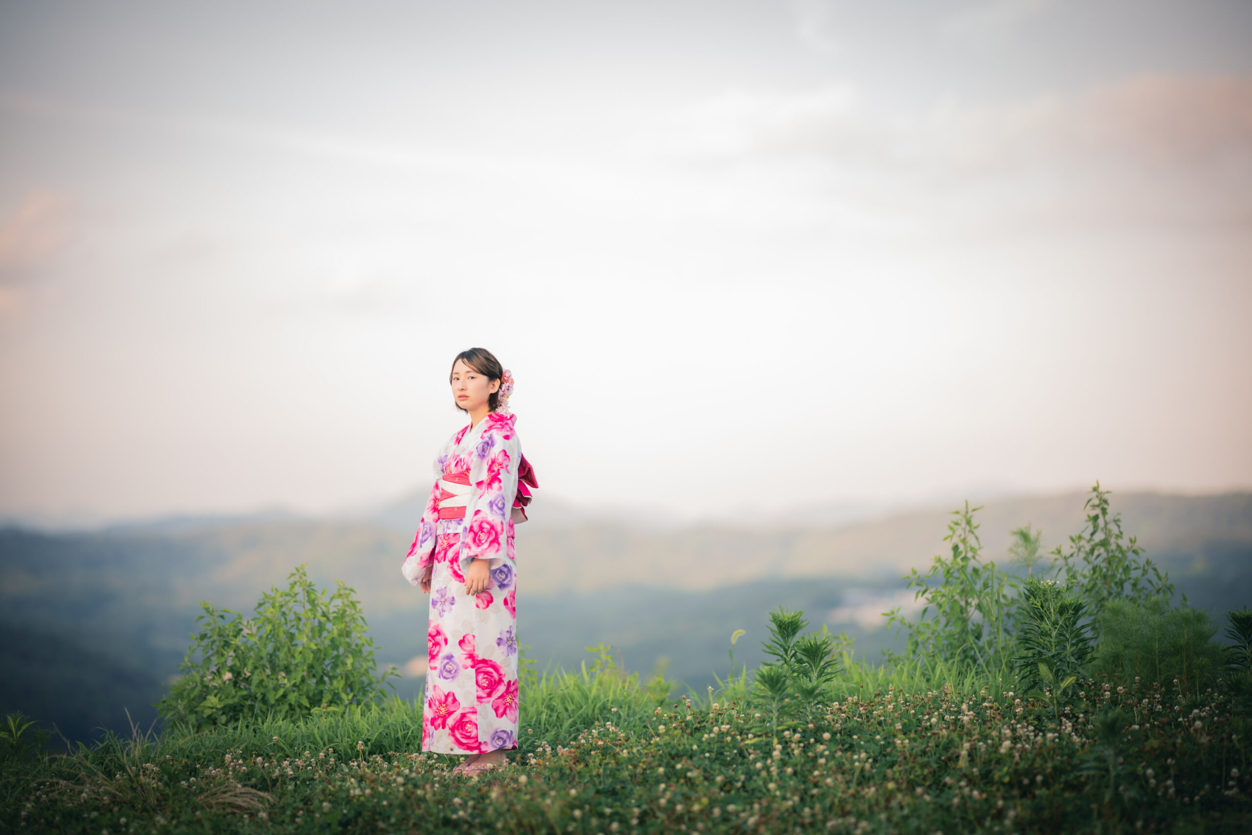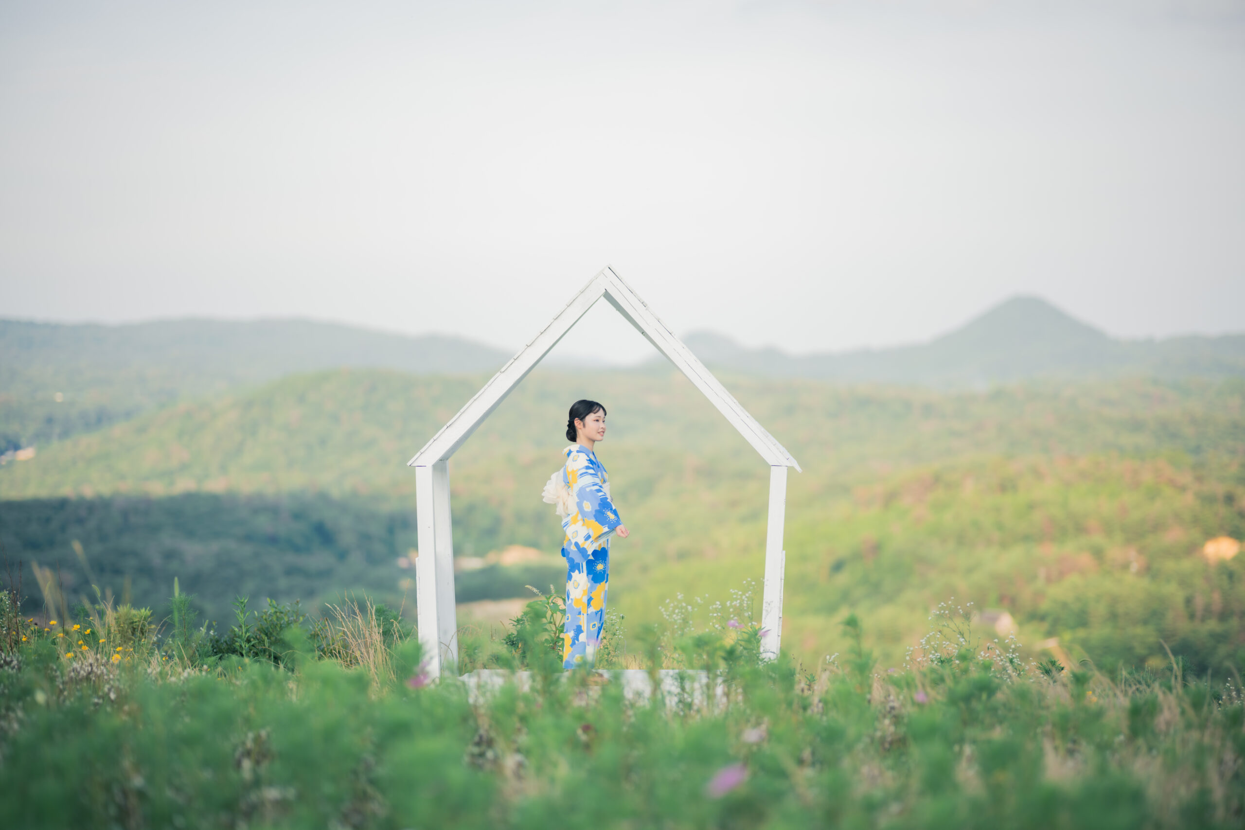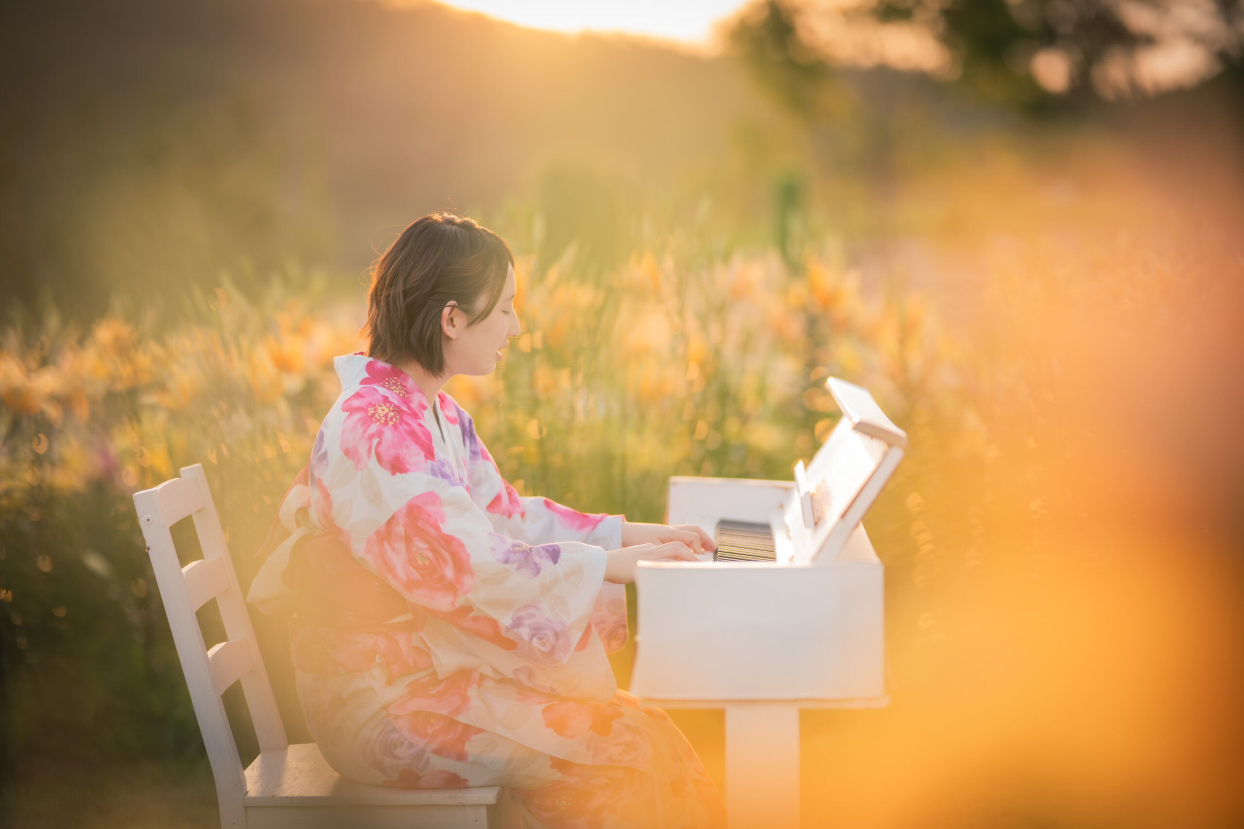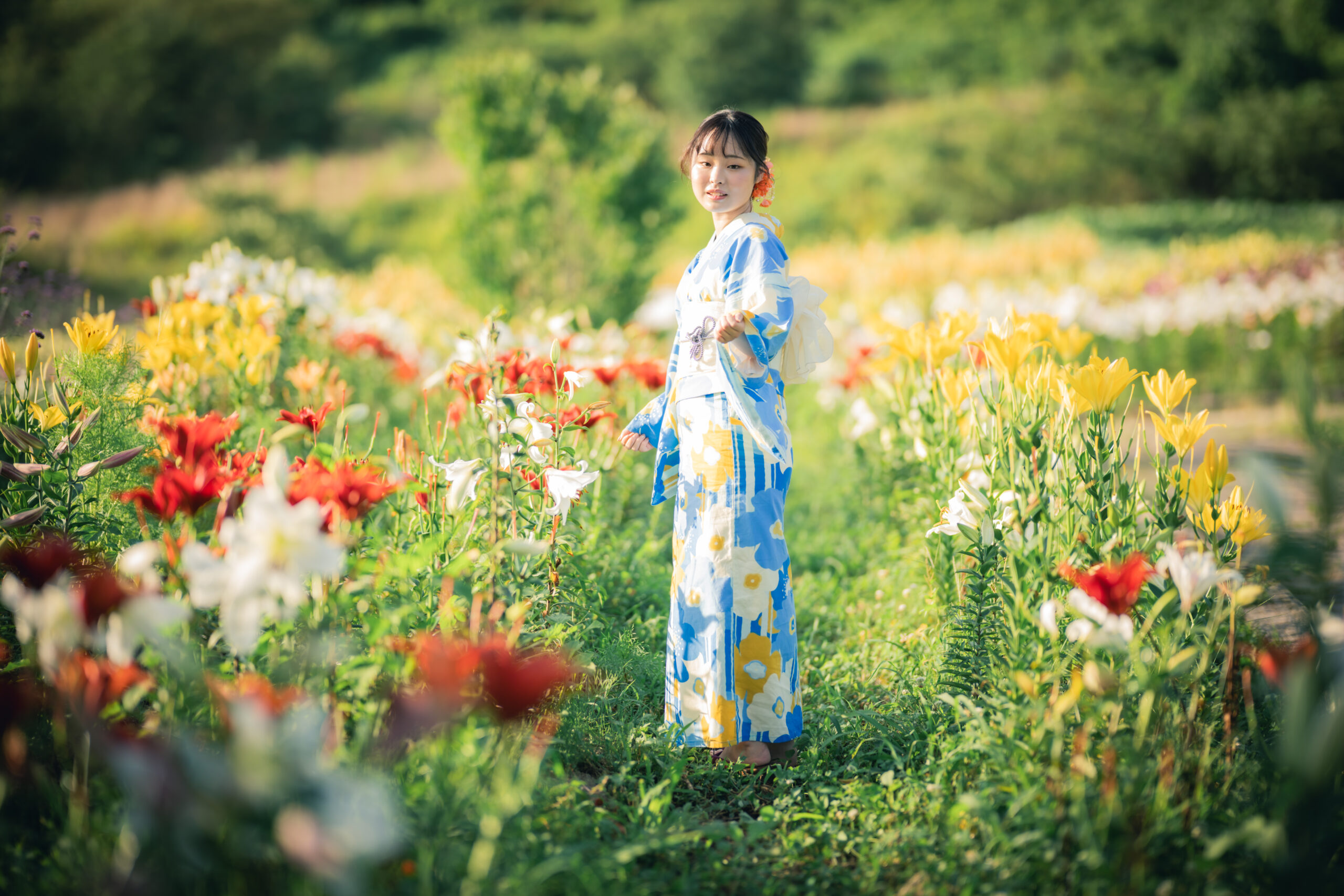 花畑で撮影する着物姿は、華やかでロマンチック。